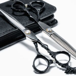 Sada nožnice efilačné a nožnice rovné 6″ čierne “drak”