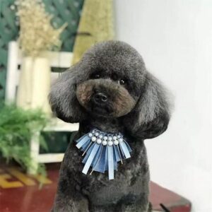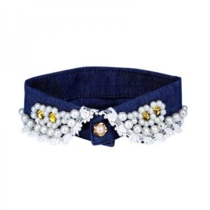 Ozdobný obojok- dekorácia na krk psa – jeans a perly