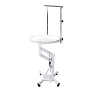 Stôl je vybavený pneumatickou základňou, ktorá umožňuje plynulé a pohodlné nastavenie výšky v rozmedzí od 72 cm do 107 cm. Vďaka tomu si ľahko prispôsobíte výšku stola podľa svojej postavy a veľkosti zvieraťa, čo výrazne šetrí chrbticu a zlepšuje ergonomiku práce.