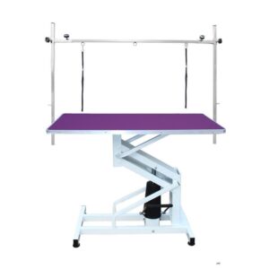 Funkčný stôl na starostlivosť o zvieratá, navrhnutý s ohľadom na komfort groomera a bezpečnosť zvieraťa.