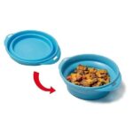 Praktická skladacia misa zo silikónu, ideálna na cestovanie s psom. Špeciálne navrhnutý tvar misky sťažuje psovi jej prevrátenie.