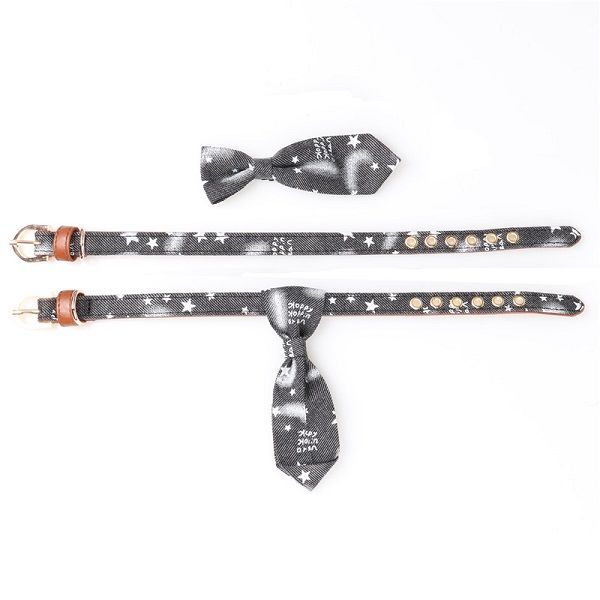 Obojok sa dodáva so štýlovou odnímateľnou kravatou, ktorú možno ľahko odňať, čo vám umožní používať samotný obojok. Toto praktické riešenie vám umožňuje prispôsobiť vzhľad vášho domáceho maznáčika rôznym príležitostiam – elegantná kravata na špeciálne udalosti alebo jednoduchý obojok na každodenné používanie.