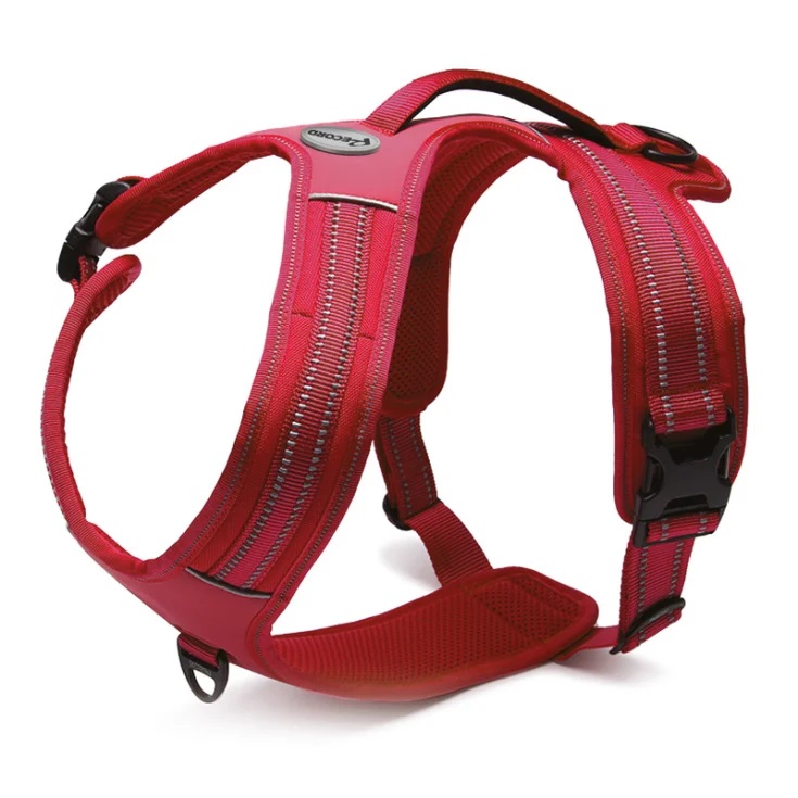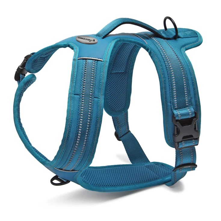 - rukoväť na prednej strane (na hrudi) na pripevnenie vodítka, takže ich možno použiť aj ako výcvikový postroj – na učenie psa chodiť pri nohe.