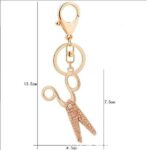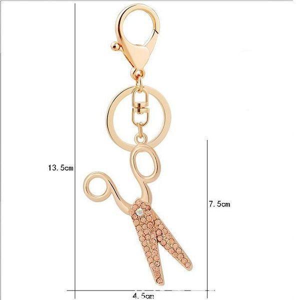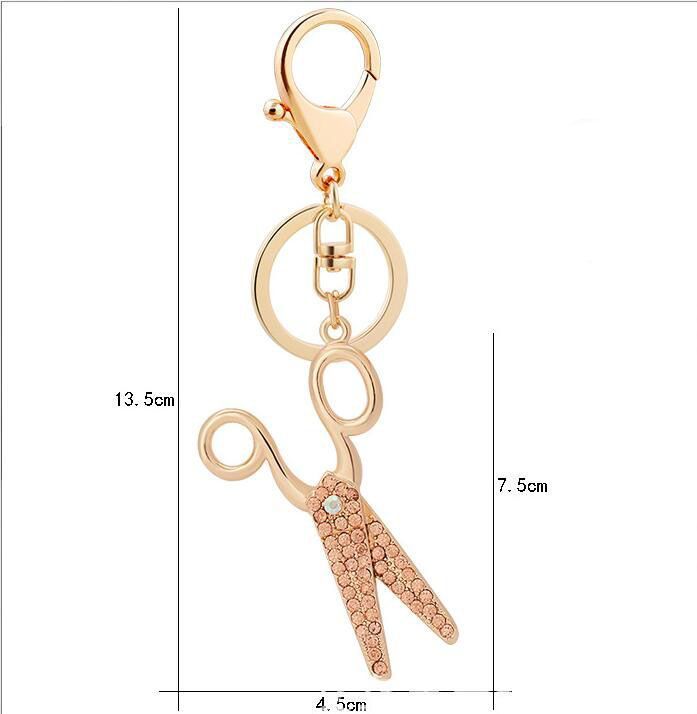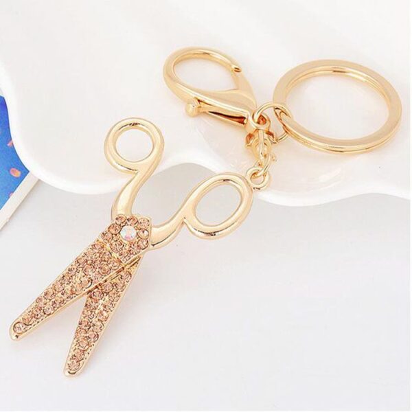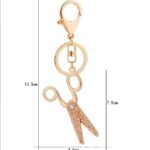 Prívesky na kľúče, nožnicový prívesok s dekoratívnymi kamienkami v troch farbách zirkónu: zlato, biela a ružová.
