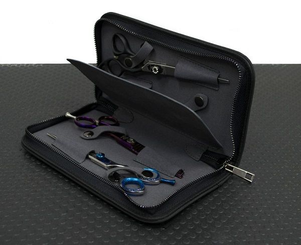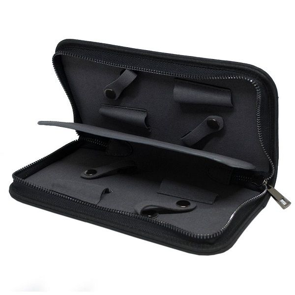 Štýlové a funkčné puzdro navrhnuté pre bezpečné uloženie profesionálnych nožníc. Každý pár nožníc je individuálne chránený – umiestnený v samostatných priehradkách a navyše fixovaný praktickým klipsom.