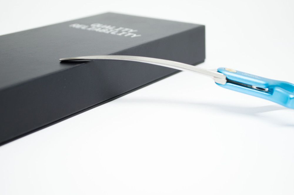 Profesionálne zakrivené nožnice, ideálne na vytváranie zaoblených plôch pri labkách, na hlave atď. Vďaka veľkému zakrivenému uhlu nožníc sú ideálne pre ázijský a kórejský štýl, kde sú tak žiaduce zaoblené presné rezy.