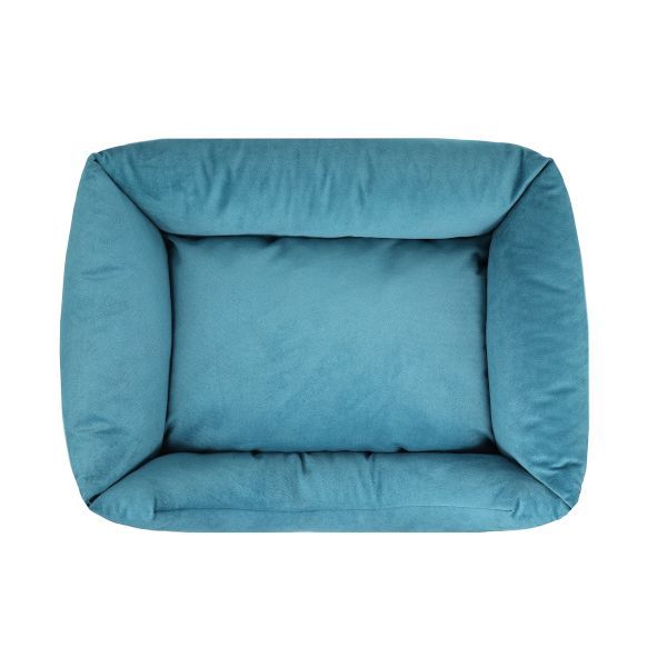 Krásna, modrá, teplá a veľmi útulná posteľ pre psa.